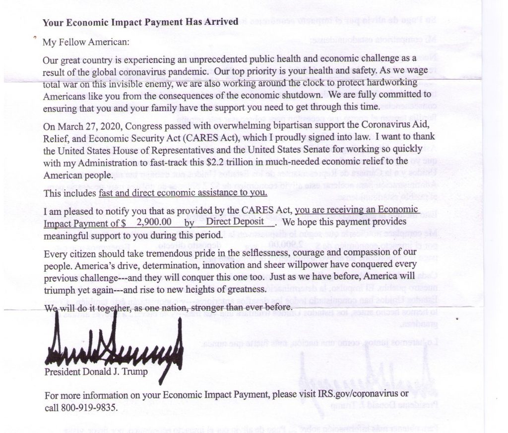 Recently many people received the Payment from IRS due to the situation created by Novel COVID-19 Pandemic. Soon after first set of payments were delivered as Direct Deposit, Donald Trump wanted his name to be on the Checks being sent out. Later, everyone who received the direct deposit also got a letter from him through IRS Notice 1444 (EN-SP) in English and Spanish that you have received the money.